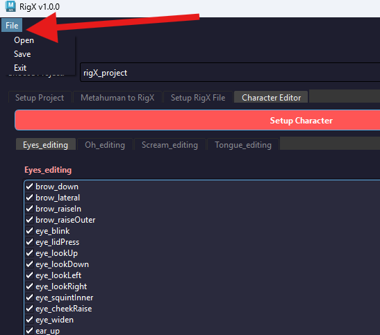 Once everything is set, click the Transfer Metahuman to RigX button at the bottom of the RigX tab. The tool will analyze all Metahuman shapes, rigs, and features, and gather the data needed to generate the RigX files. Depending on your PC’s performance, this process may take approximately 15 minutes.