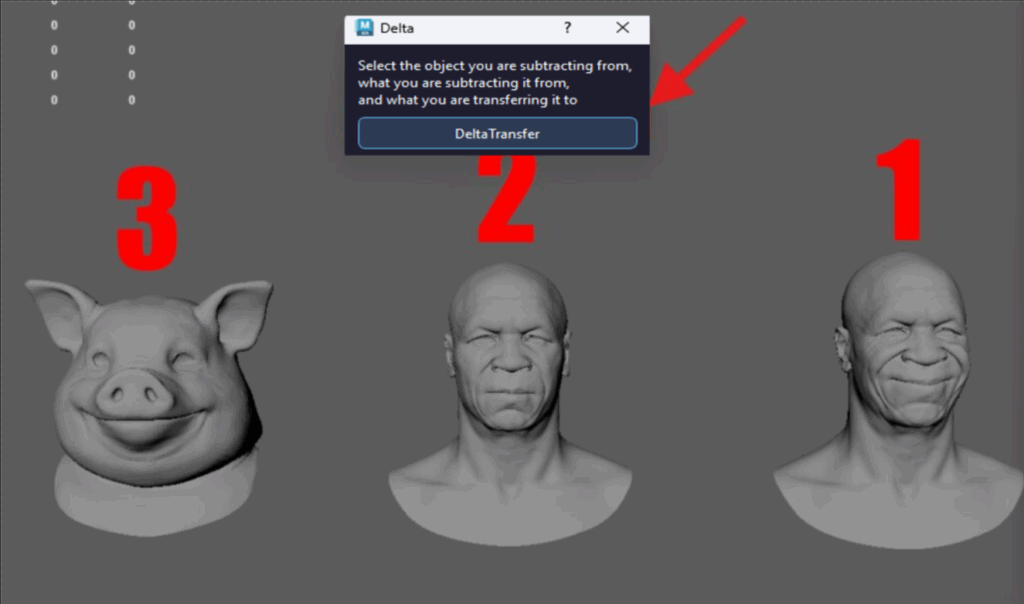 The Delta tool allows you to quickly create high-end expressions and isolate specific ones from combinations. It requires three head models to operate and is compatible with humanoid characters.