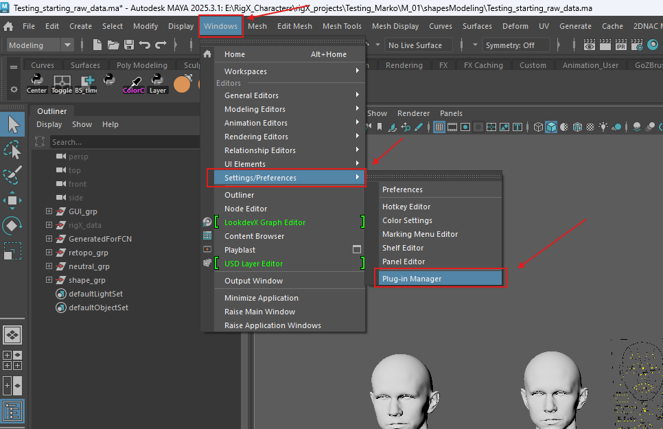 Save the file. - Load Plugins in Maya: Open Maya 2025.