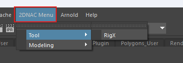When you navigate to the 2DNAC Menu you can find two submenus: Tool and Modeling.